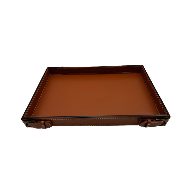 Bandeja de Almacenamiento Rectangular de Cuero Clásico ZENOS para Baño, Joyería, Cosméticos, Diseño Multifuncional, Reutilizable y Sostenible