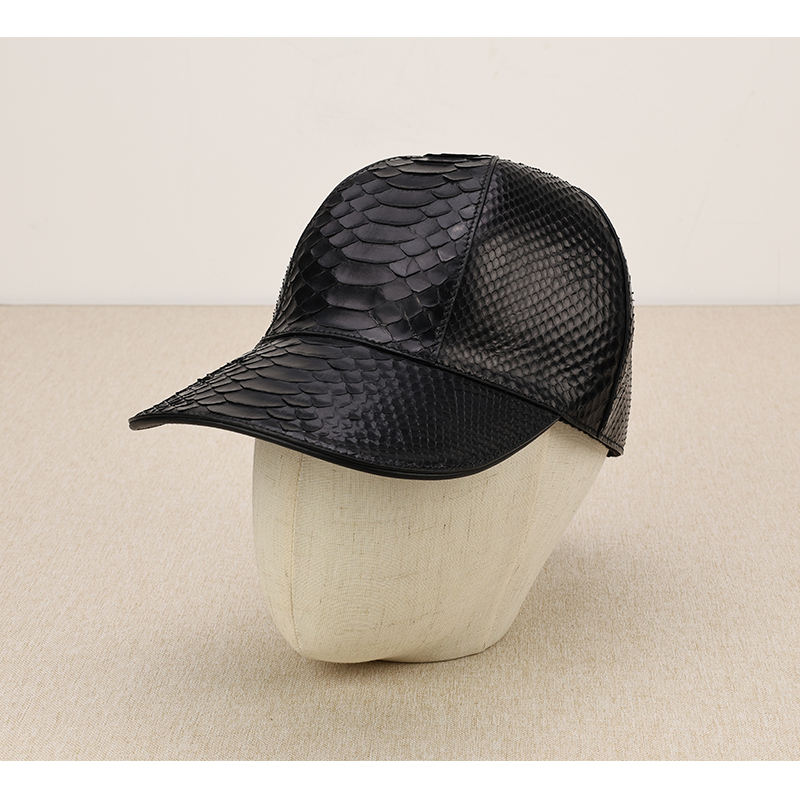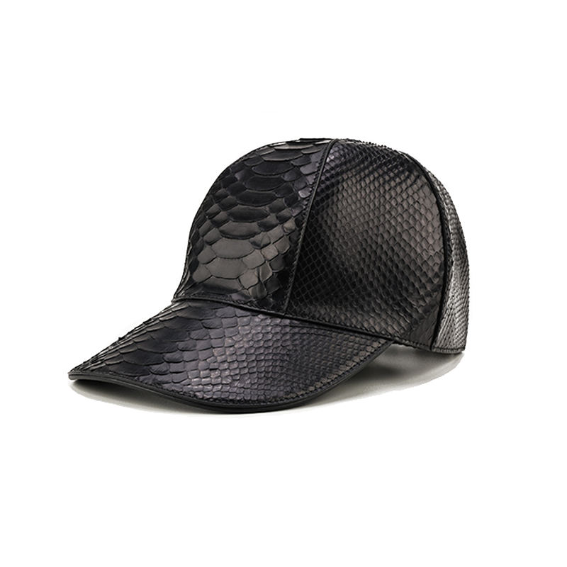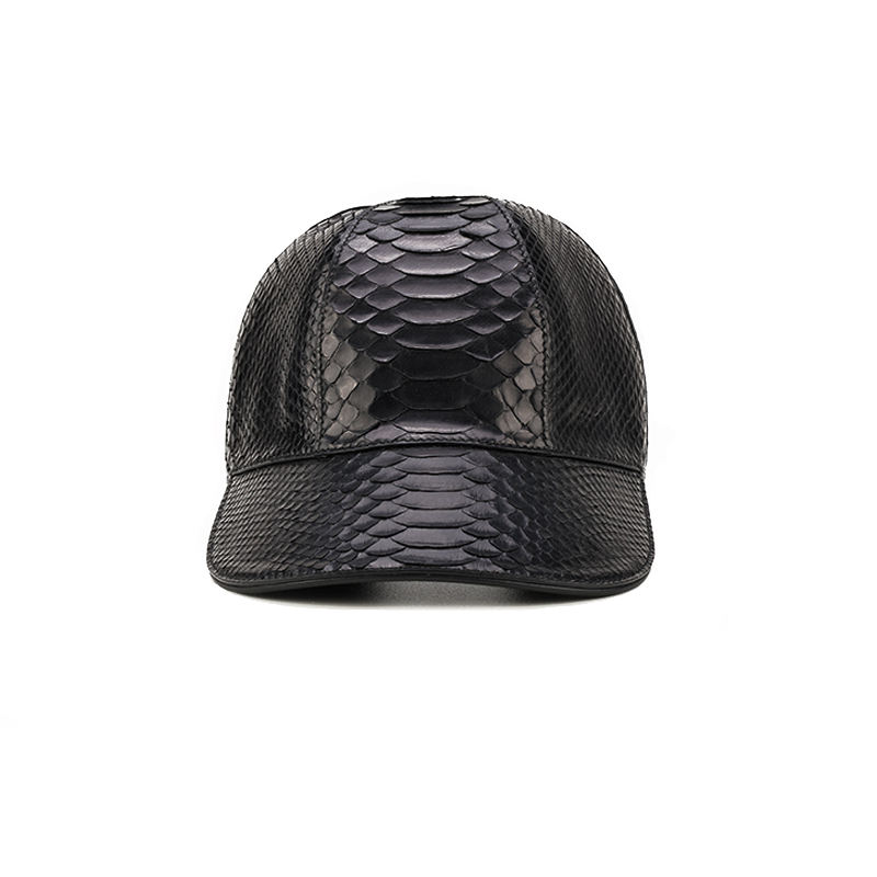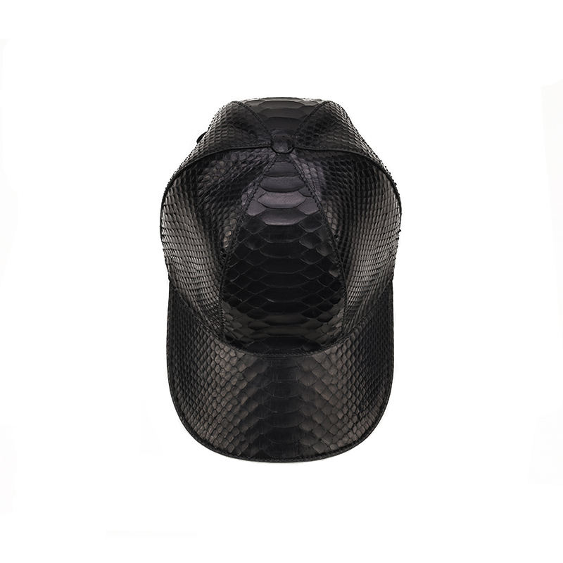 Gorra de Béisbol ZENOS de Alta Gama, Personalizada, de 6 Paneles, con Hebilla de Cobre Dorado, para Todas las Estaciones, de Piel de Pitón, Impermeable, Negra Lisa Única