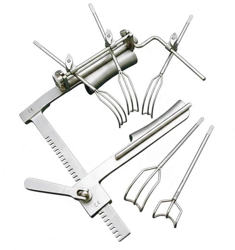 Juego de Retractores de Válvulas ZETOMEDPRO, 7 Retractores, 3 Resortes de Sutura, Pinzas de Barra de Sujeción Universal, Separador Esternal, Brazo Largo, Hojas de 28 mm
