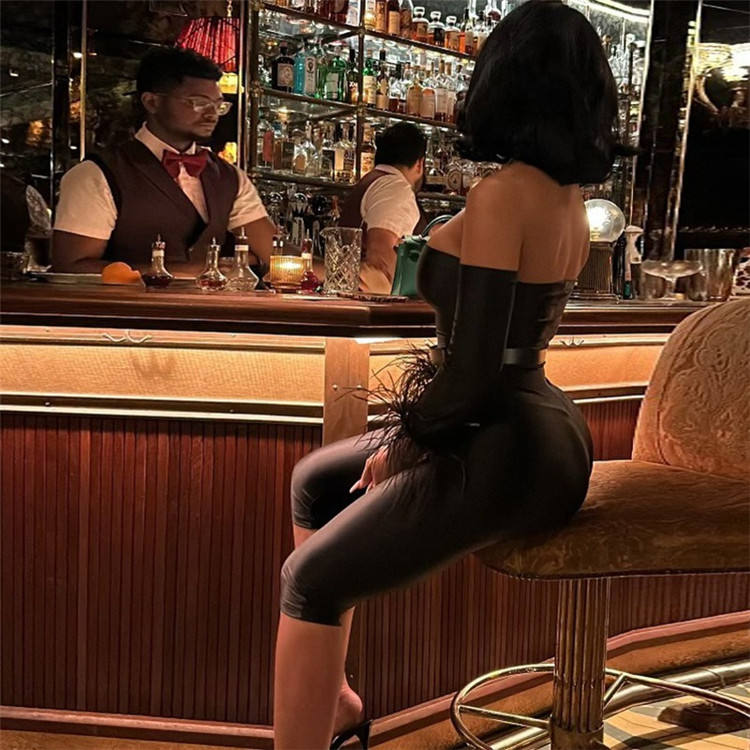 ZHEZHE Feather 2026 Tendencia de Primavera Mono Elegante de Mujer con Cuello Asimétrico, Elástico, Estilo Urbano, Ajustado