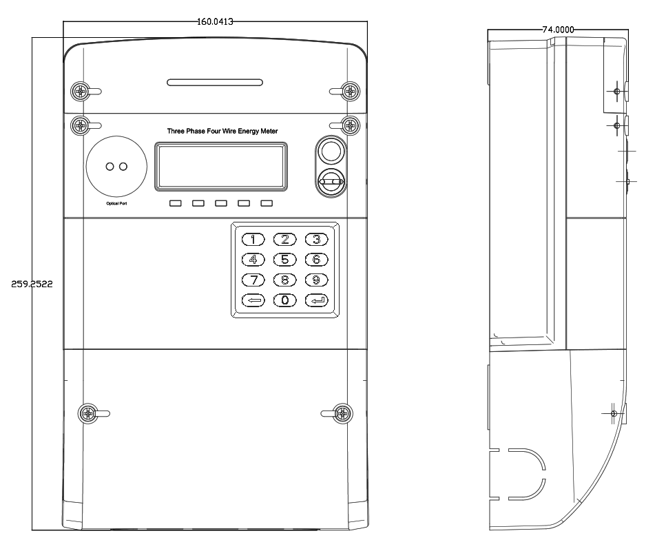 Medidor de Energía Trifásico con Teclado ZHONGYI STS DLMS/DL/T645-2007 Modbus-RTU RS485/LoRaWAN, Clase de Potencia Activa 1, 100A, Potencia Reactiva