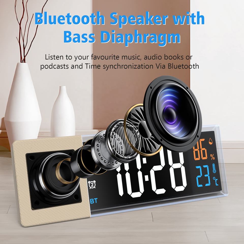 Reloj Digital ZHX S801 con Pantalla LCD Grande, Doble Alarma, Monitor de Humedad y Temperatura y Altavoz Bluetooth