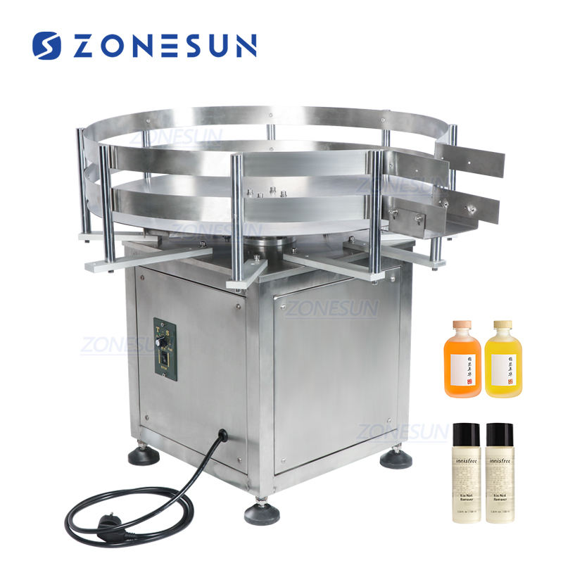 Máquina colectora de botellas de vidrio de plástico giratoria redonda automática ZONESUN, máquina giratoria de clasificación de envasado de alimentos para descodificar