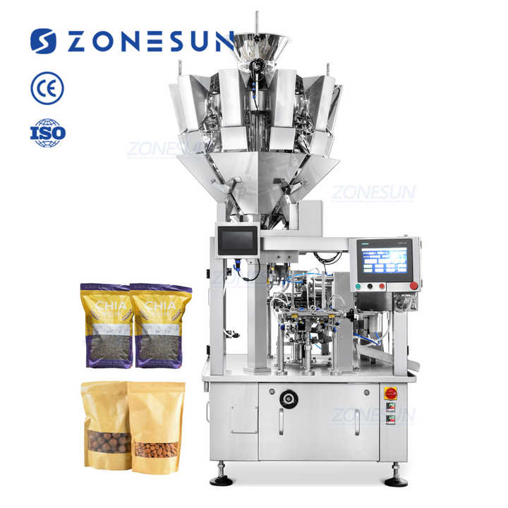 ZONESUN automático de cabezales múltiples rotatorio té alimentos para mascotas cereales bolsa prefabricada bolsa gránulo pesaje máquina de sellado y llenado