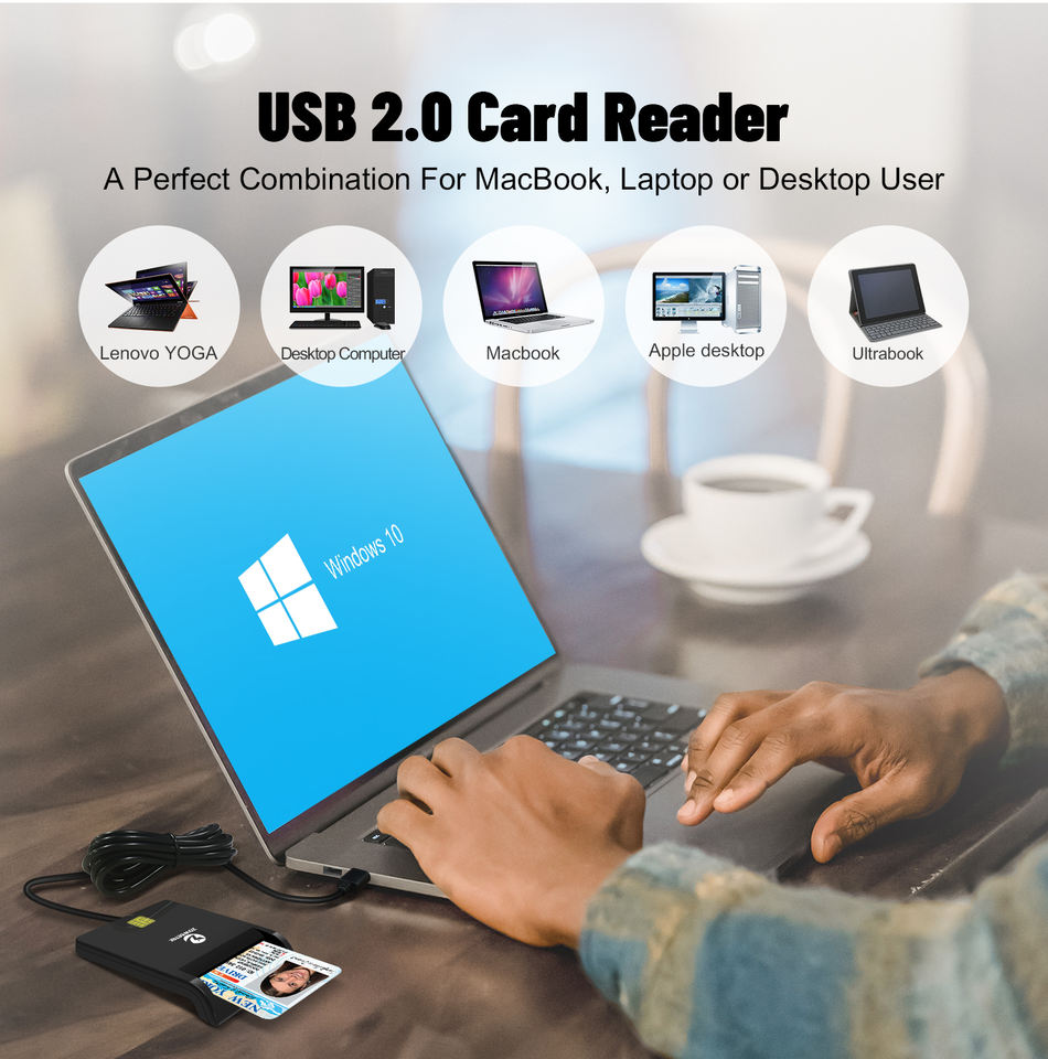 Lector de Tarjetas con Chip ZOWEETEK ISO 7816, Lector de Tarjetas de Identificación de Contacto, Lector de Tarjetas Inteligentes USB, Pago para Windows, Mac OS, Linux