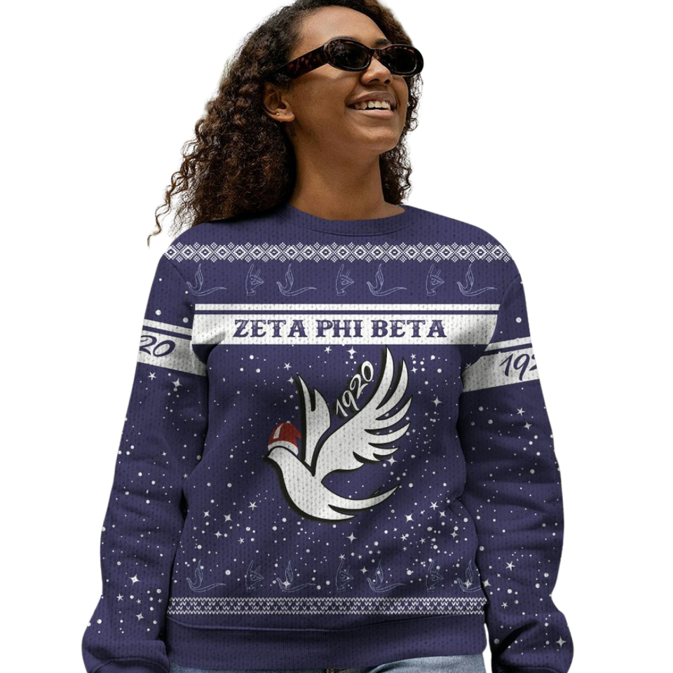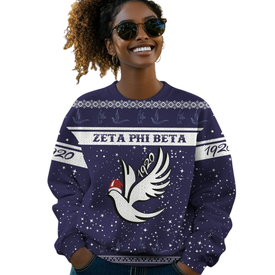 ZPhiB Divine Nine 1920 Suéter de punto Zeta Phi Beta Sorority Azul Blanco Chenille Letter Greek Life Premium Suéter