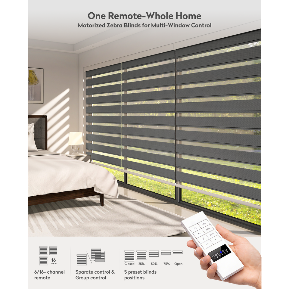 Persianas Inteligentes Motorizadas ZSTARR Zebra Blinds One 6 16 con Control Remoto para Múltiples Ventanas, Compatibles con Google Assistant y Amazon Alexa