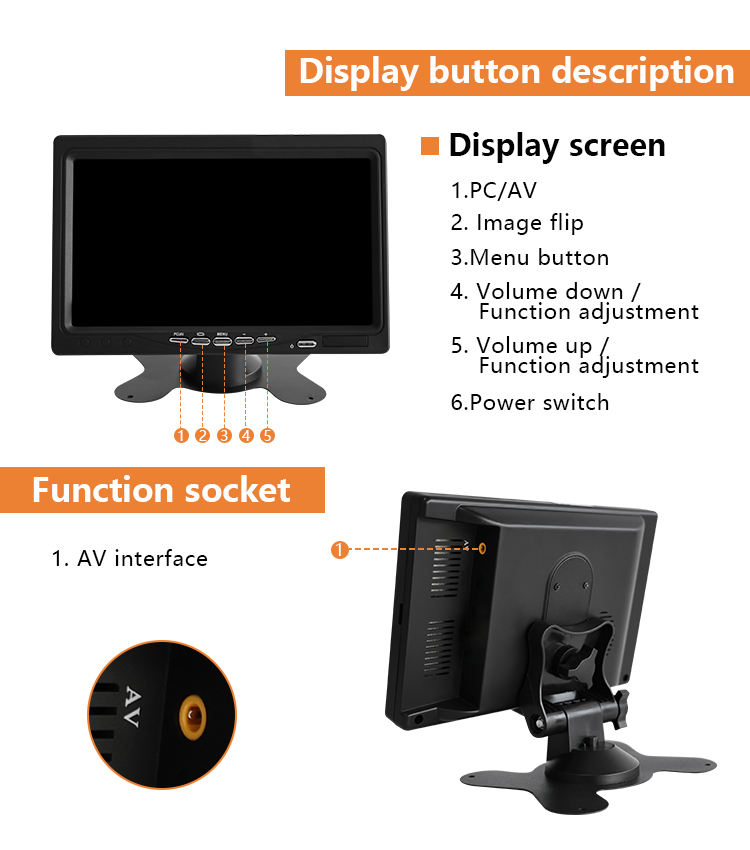 Nombre del producto:Monitor de botón táctil 2CH AV/AHD de 7 pulgadas