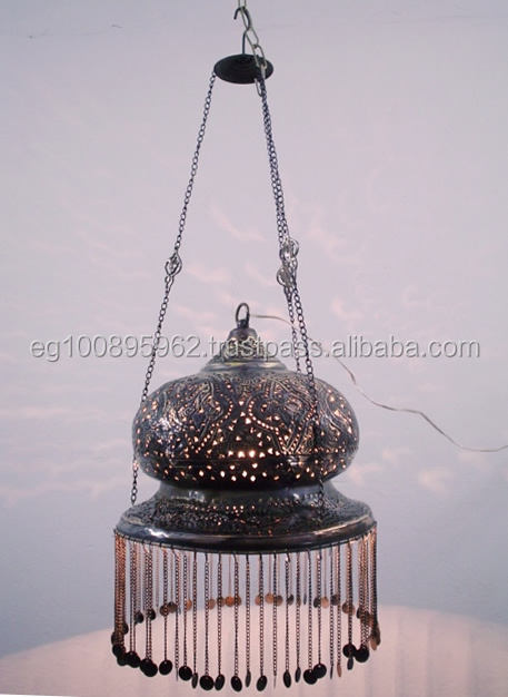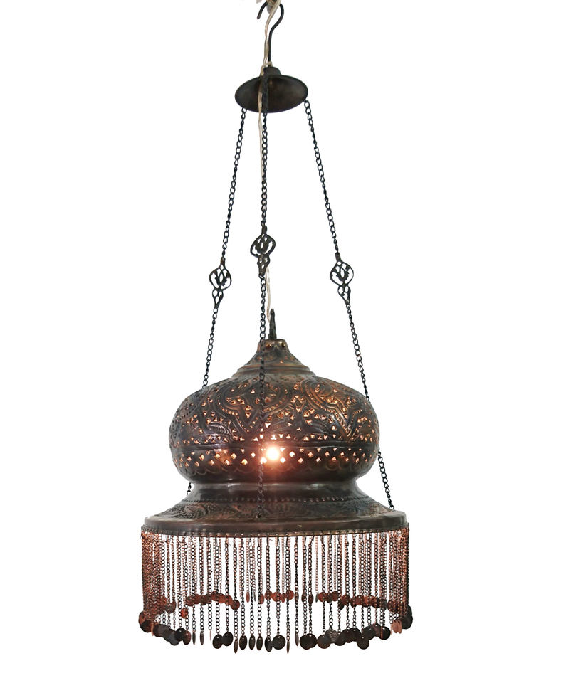 Pantalla de Lámpara Colgante Estilo Antiguo Egipcio Zahereen BR112, Diseño Redondo Hecho a Mano en Latón Premium, 18x14 Pulgadas