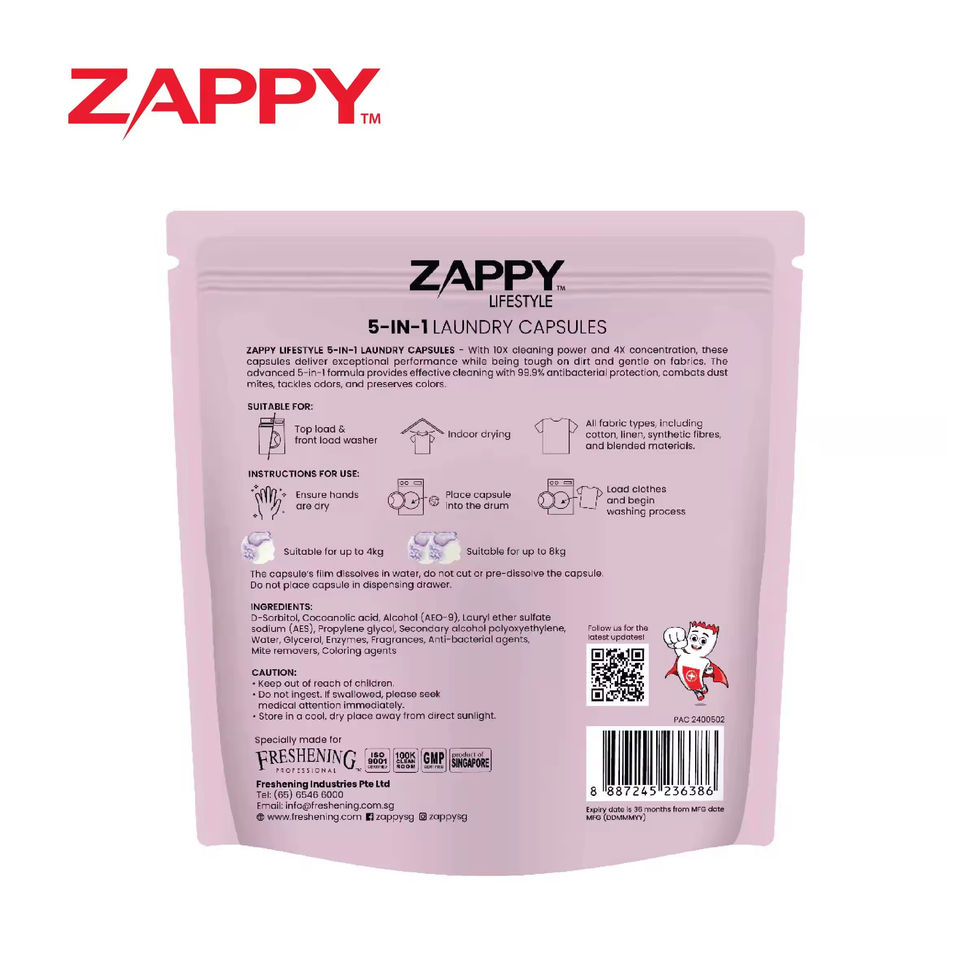 Cápsulas de detergente para ropa 5 en 1 respetuosas con el medio ambiente Zappy Lifestyle para hogares ocupados y limpieza sostenible