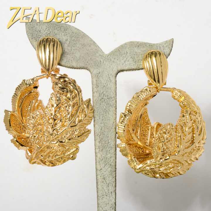 Pendientes Largos de Aleación de Cobre con Flores Exageradas Estilo Bohemio, Chapados en Oro de 18k, Unisex, de Zeadear Jewelry