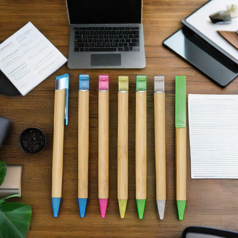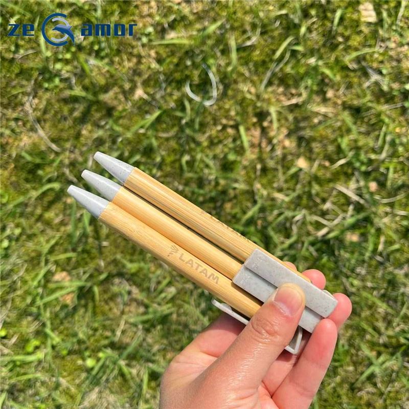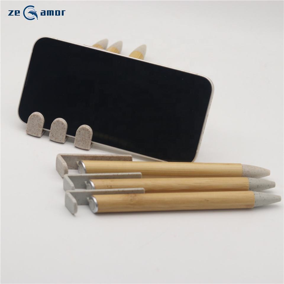 Bolígrafo Ecológico Multifuncional Zeamor de Bambú, Biodegradable, con Logotipo Personalizado, Clip de Paja de Trigo, Soporte para Teléfono, Regalo Promocional