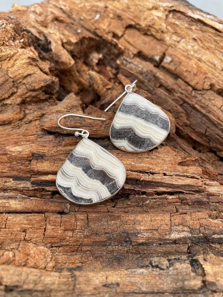 Palabra clave:Pendientes de botón de Calcita Cebra con piedras brillantes de Calcita Cebra.