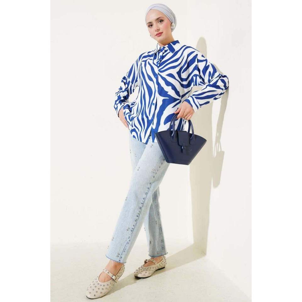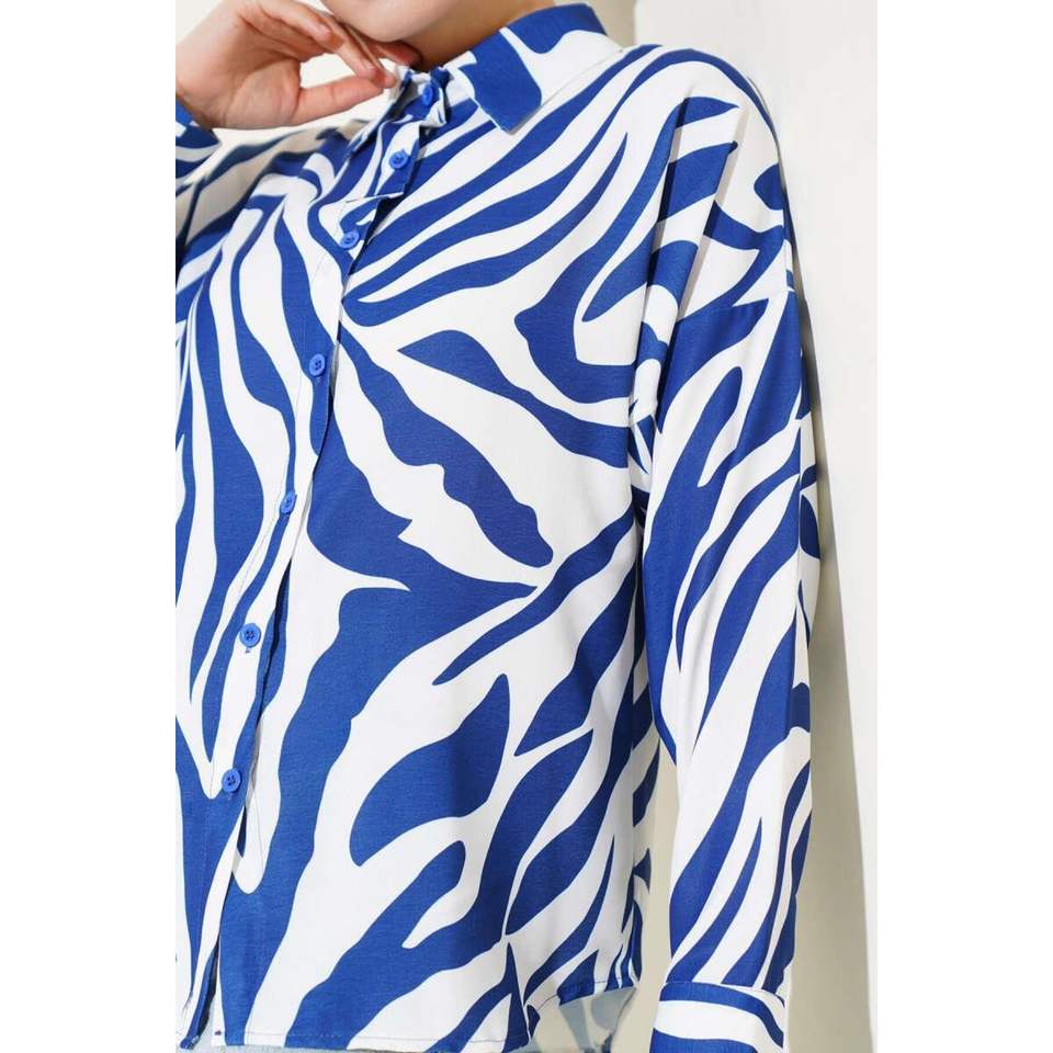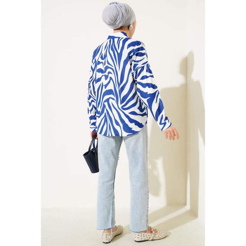 Camisa Estampado Cebra Azul Marino