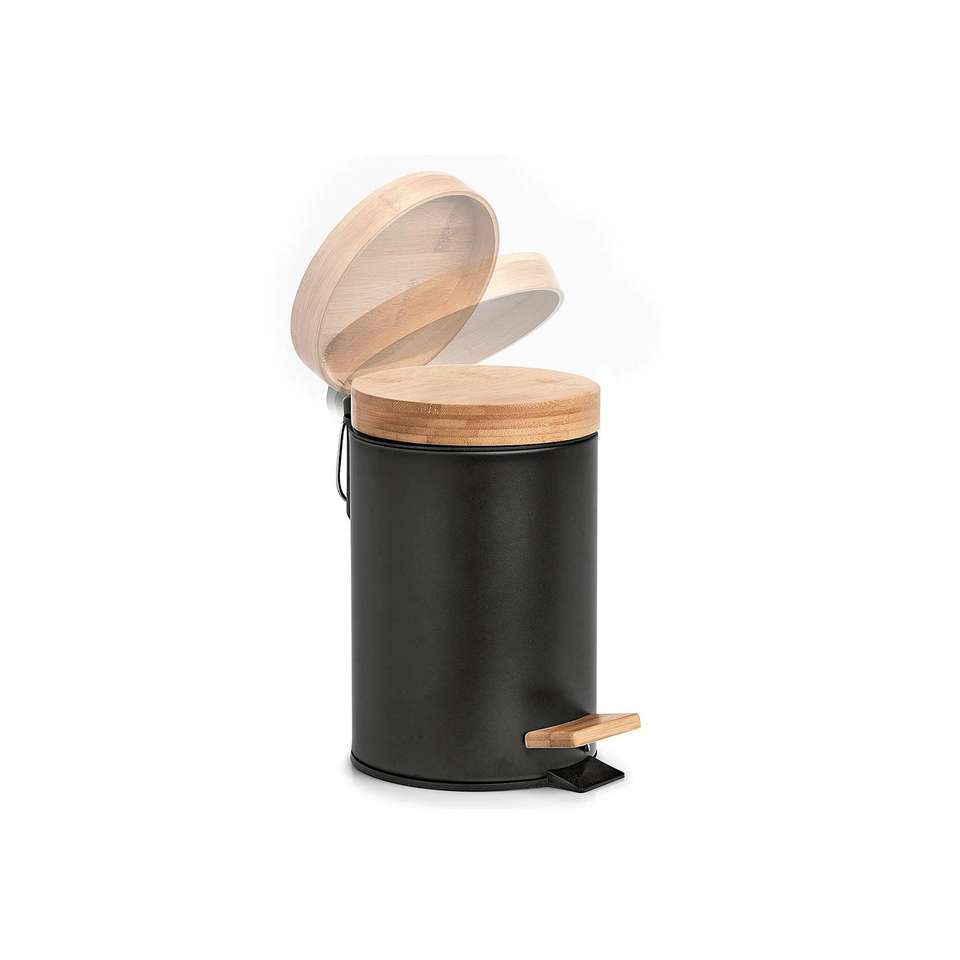 Zeller Presente Kosmetikeimer cierre suave 3l Ø 16,8x24cm Metall/Bambus Schwarz