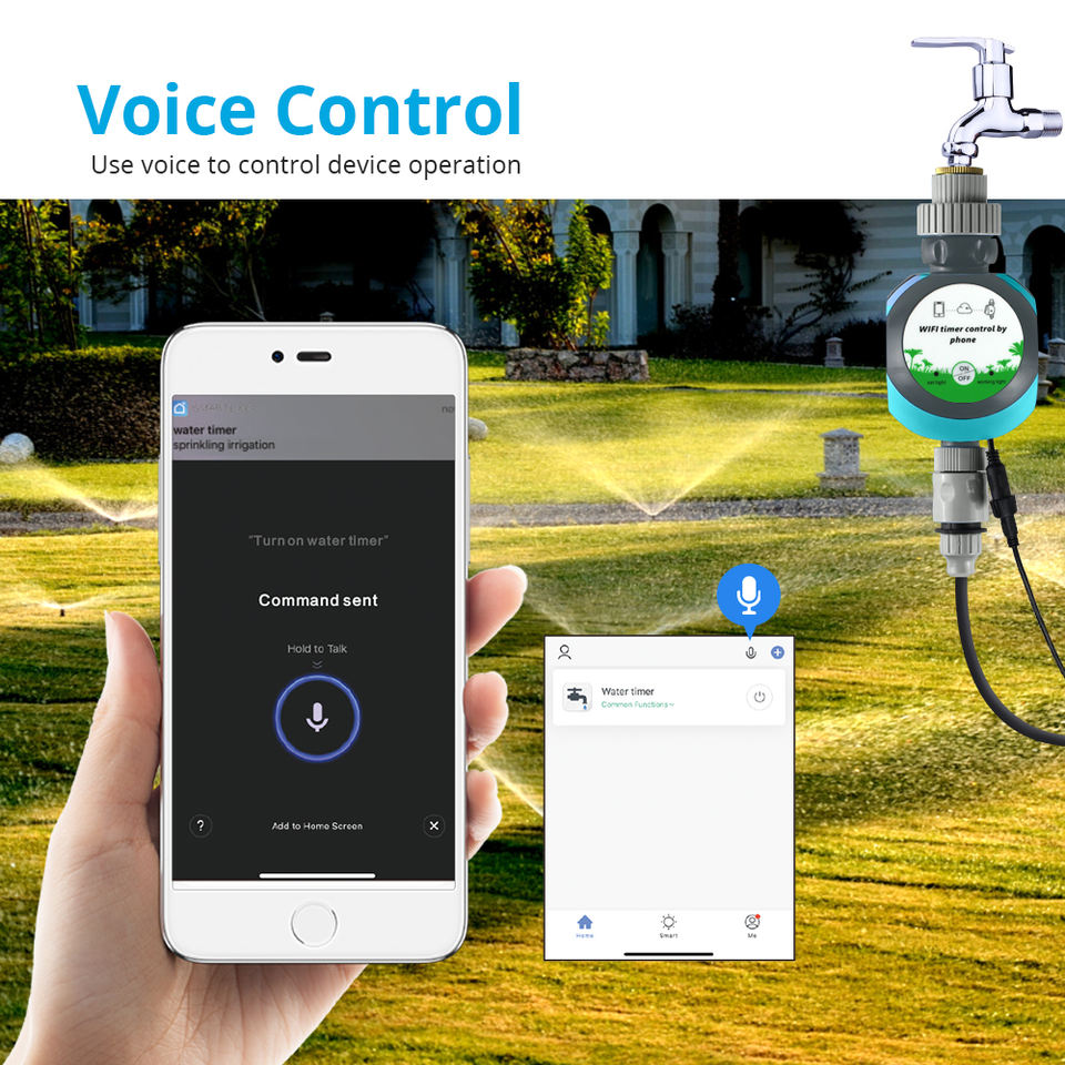 Sistema de riego inteligente Zemismart Tuya WiFi, rociador de jardín eléctrico automático, temporizador remoto Alexa/Echo/Google Home Farm Lawn