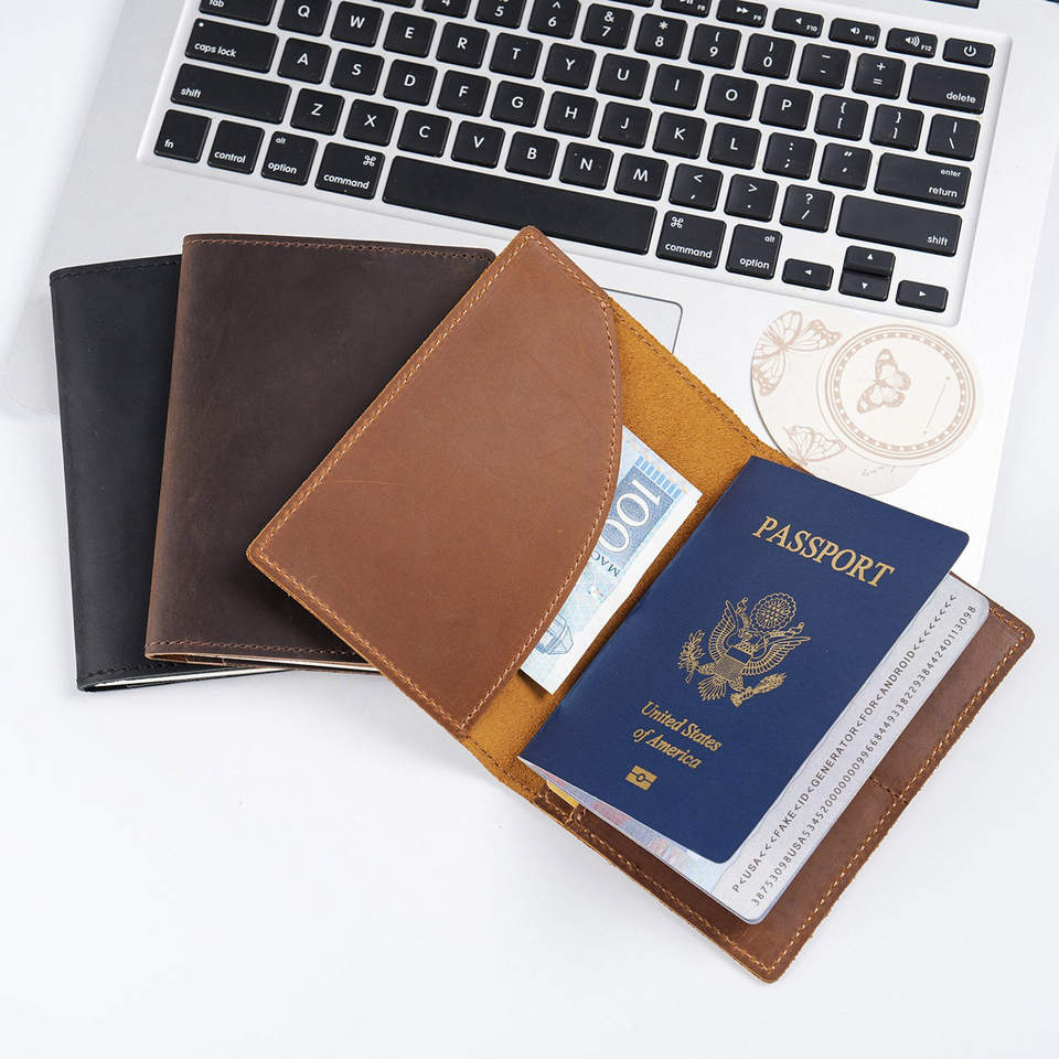Porta Pasaportes Abierto de Cuero Vacuno Retro Zenos, Porta Boletos de Avión Simple de Cuero Genuino, Porta Identificación Multifuncional