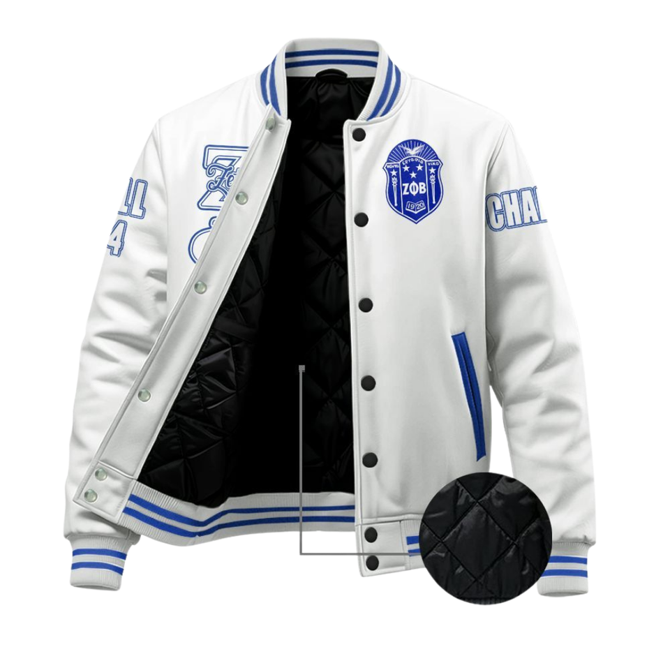 Zeta Phi Beta 1920 Greek Life Blue White Varsity Letterman Jacket Sorority ZPB Chenille Patch Founders Edition