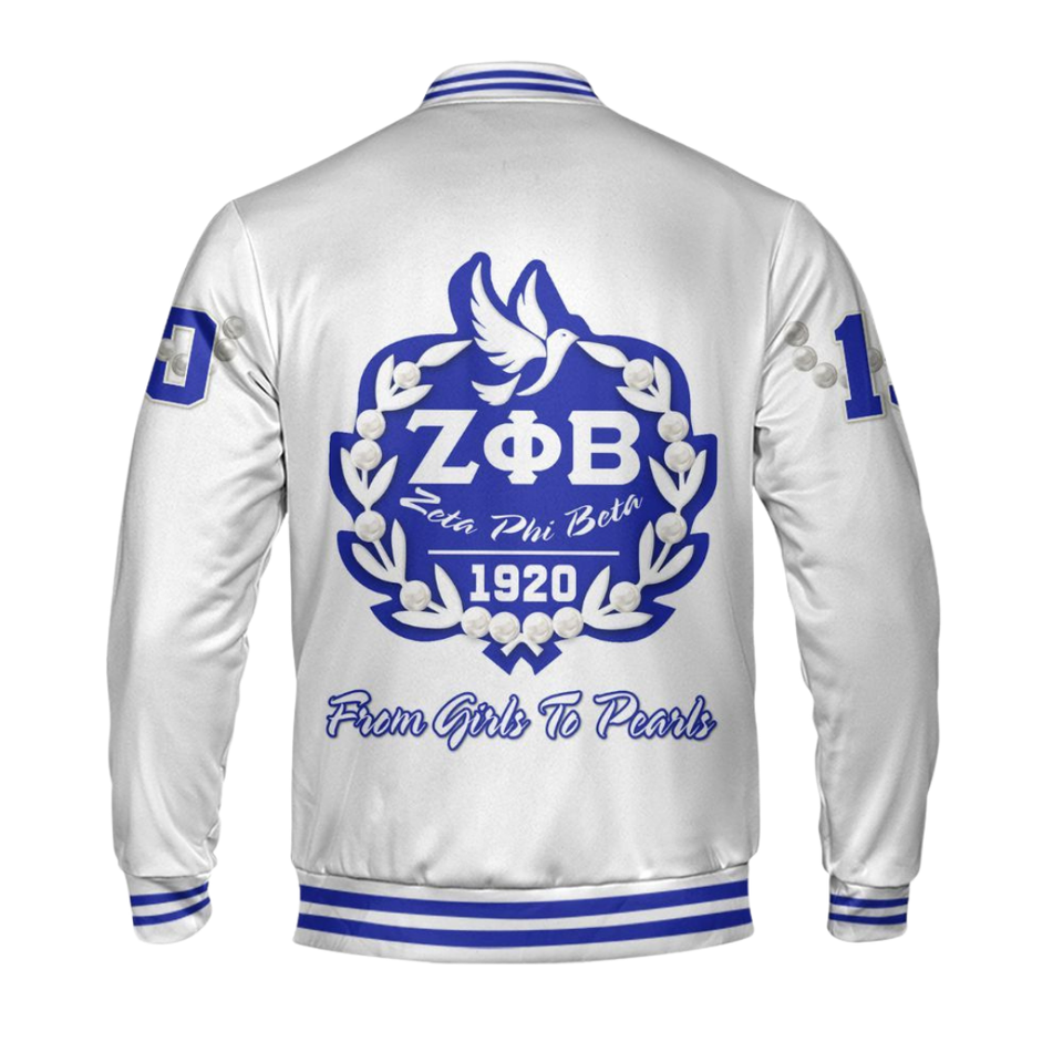 Zeta Phi Beta 1920 Greek Life Letterman Jacket ZPB Azul Blanco Hermandad Varsity Chenille Patch Founders Style Coat