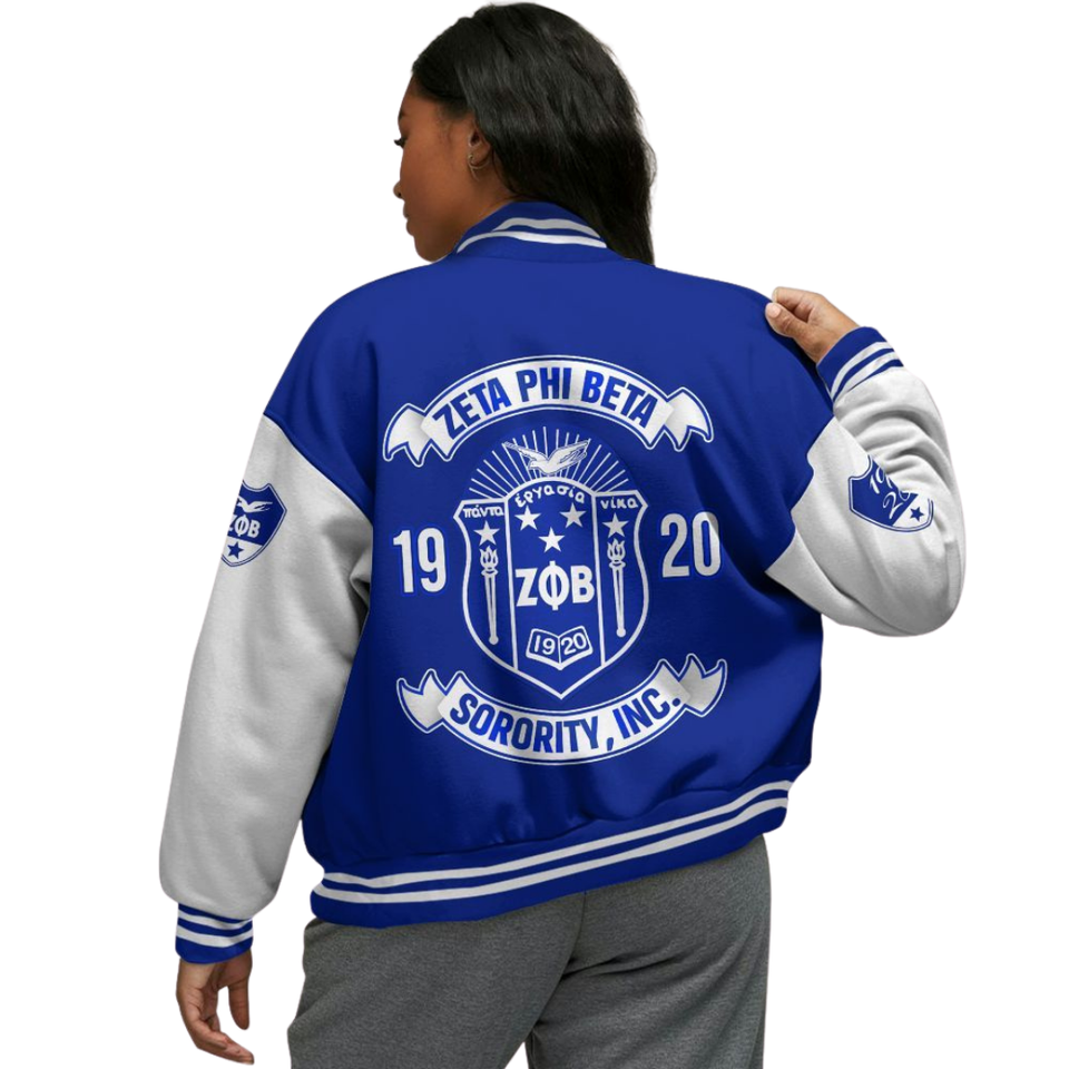Zeta Phi Beta 1920 Sorority Letterman Chaqueta Azul Blanco ZPB Greek Life Varsity Chenille Patch Founders Day Apparel