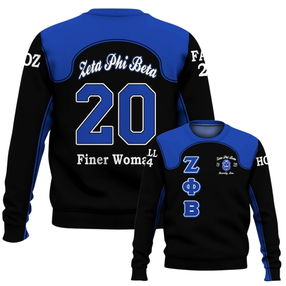 Sudadera con Cuello Redondo Bordada de Zeta Phi Beta para Mujer, Azul, Ropa Griega de Hermandad, Sudadera de Forro Polar de 1920