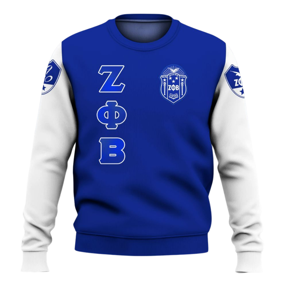 Sudadera Azul con Cuello Redondo Bordada de la Hermandad Zeta Phi Beta 1920, Sudadera Griega para Mujer