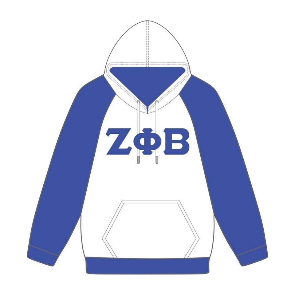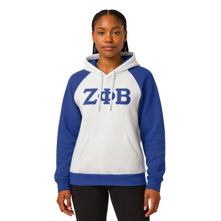 Zeta Phi Beta White Body Blue Raglan Sleeves Pullover Sudadera con capucha Greek Sorority Apparel Custom Divine Nine HBCU Life Clothing