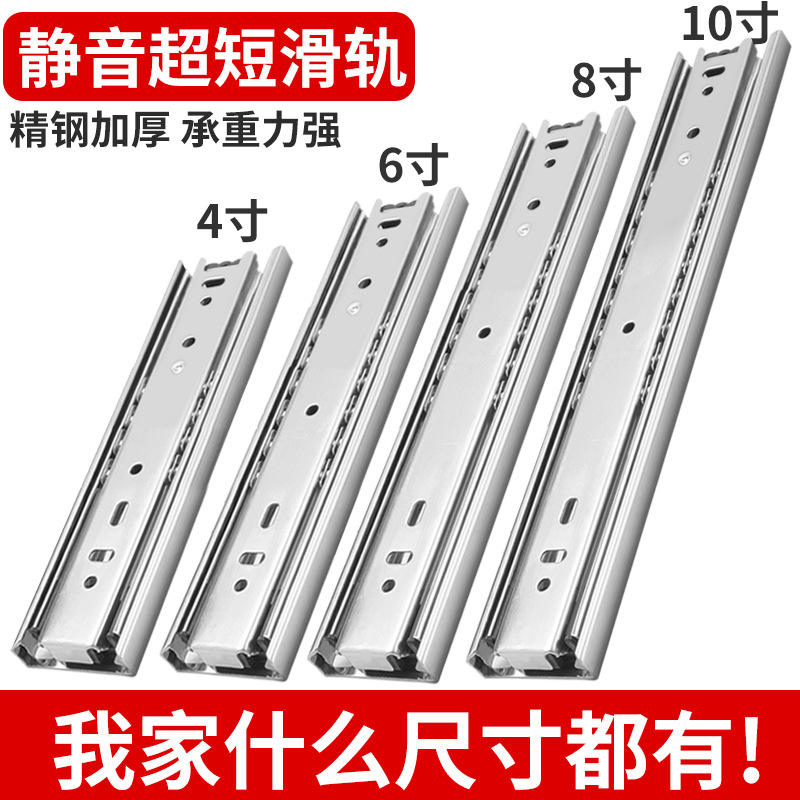 Correderas de Cajón de Tres Secciones Zhan Han de 4, 5, 6 y 8 Pulgadas, de Acero Laminado en Frío, con Rodamientos de Bolas Silenciosos para Muebles y Armarios