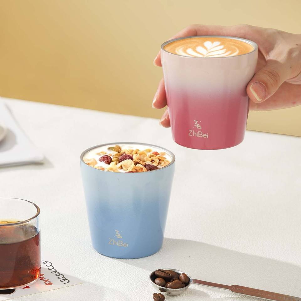 Taza de acero inoxidable ZhiBei, taza de café con aislamiento de doble capa y color degradado para viajes, acero 304