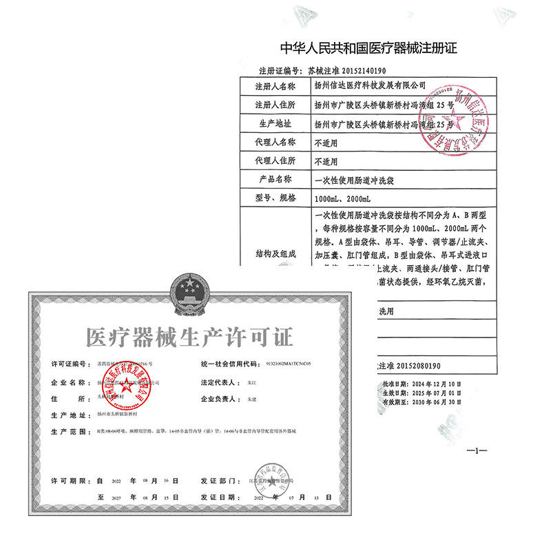 Bolsa de irrigación intestinal desechable ZhiDa Medical de 1000 ml, dispositivo de enema portátil de un solo uso para uso médico