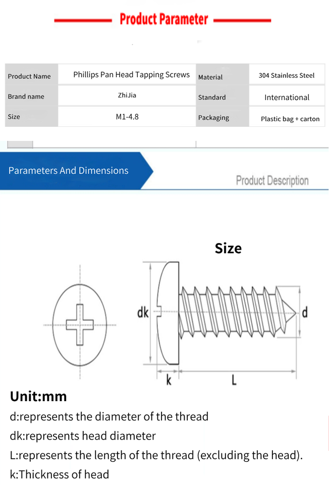 Nombre del producto:Tornillos autorroscantes