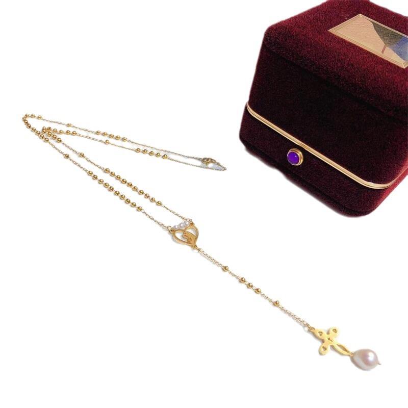 Collar Largo de Acero de Titanio con Colgante en Forma de Corazón y Cadena de Perlas de Agua Dulce, Estilo Otoño-Invierno, Nueva Tendencia Zhizhen