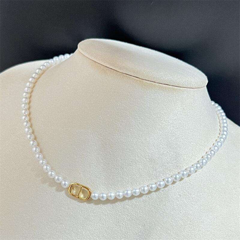Collar de Perlas de Agua Dulce con Diseño Francés Retro para Mujer, Plata de Ley S925, Diseño Simple y Exclusivo de Alta Gama