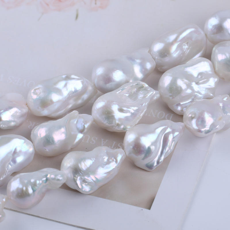 Collar y Pulsera de Perlas Blancas Grandes de 14-18 mm de Zhuji, Perlas Keshi Sueltas de Forma de Patata, Cultivadas en Agua Dulce Natural, para DIY