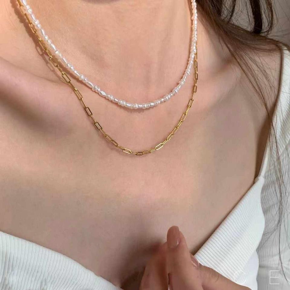 Collar de Perlas de Agua Dulce de 14K de Zhuji, Cadena Sólida, Natural, Se Puede Usar en Capas, Otros Accesorios de Moda