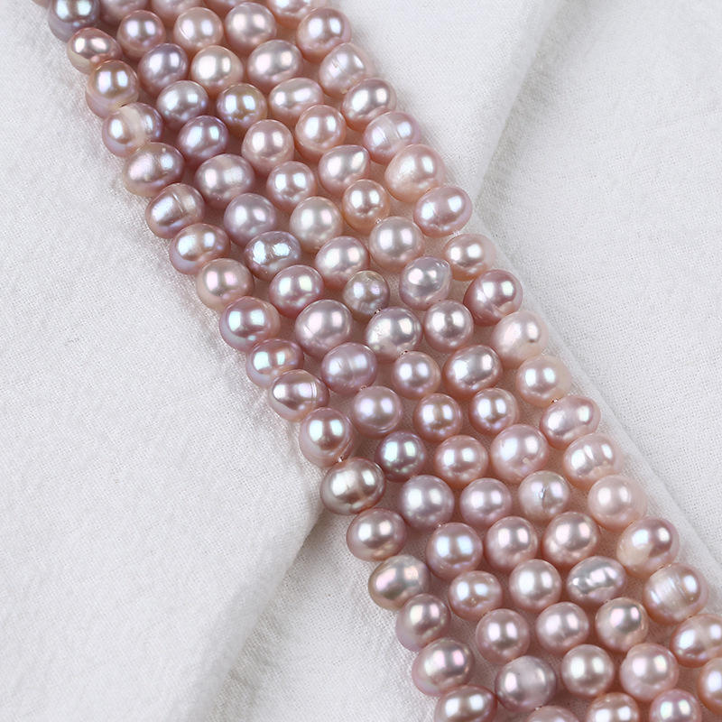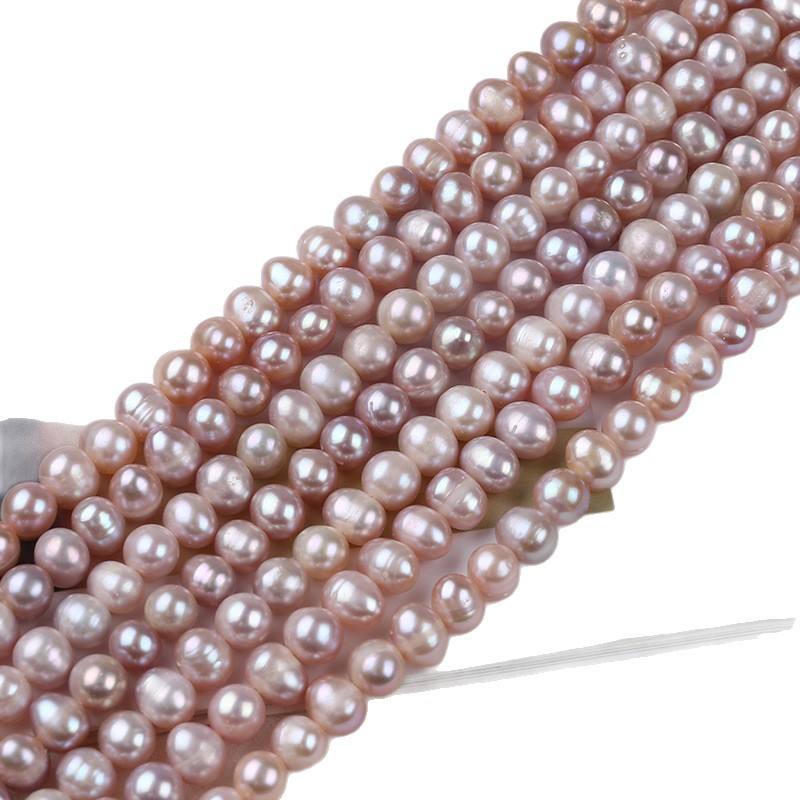 Perlas Cultivadas de Agua Dulce Naturales de Zhuji, Color Morado, de 7-8 mm, Forma Ovalada, para Hacer Collares y Pulseras, Blancas, Sueltas, al por Mayor