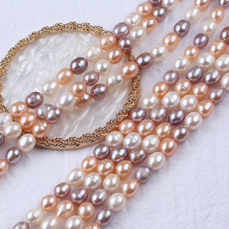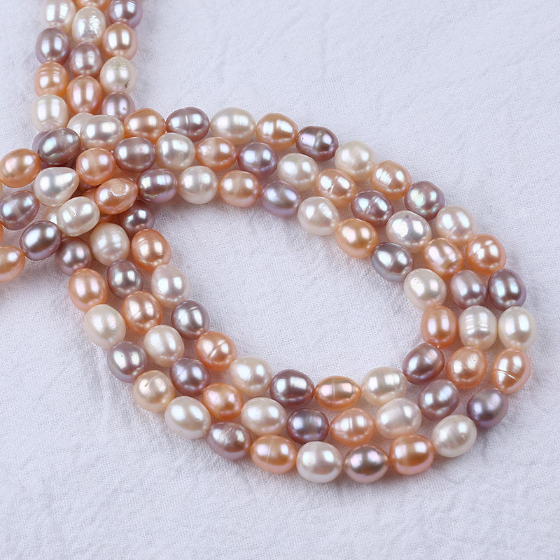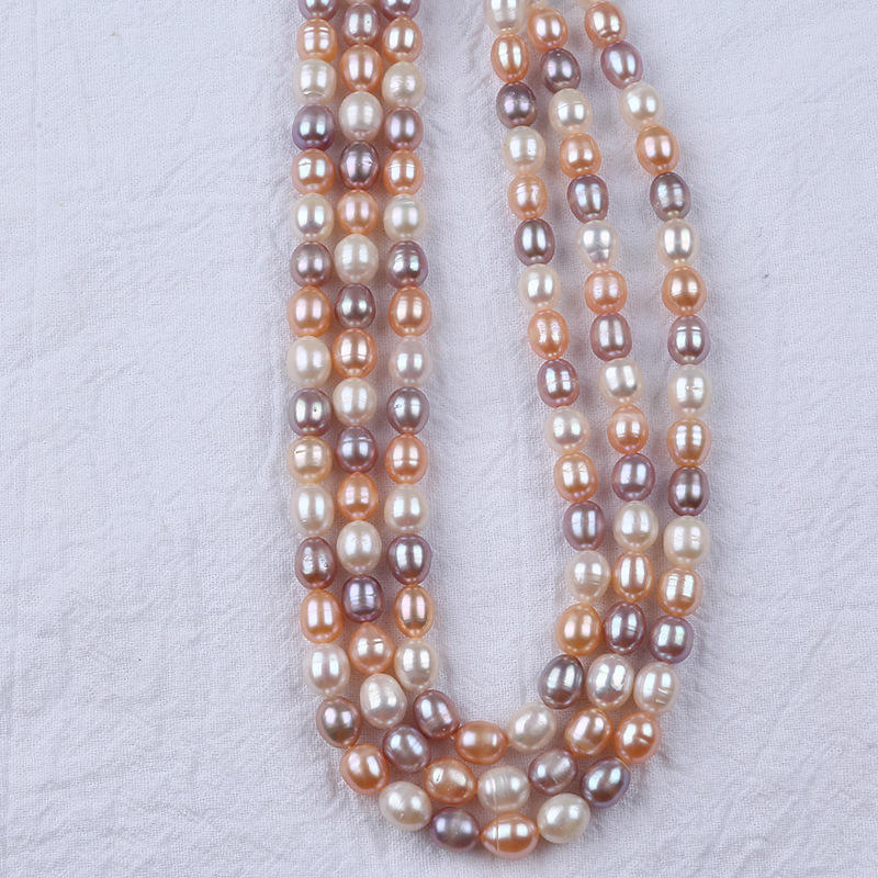 Perlas de Agua Dulce en Forma de Arroz Morado en Polvo Blanco de 7-8 mm de Zhuji, Hebras de Perlas Dispersas para Hacer Collares