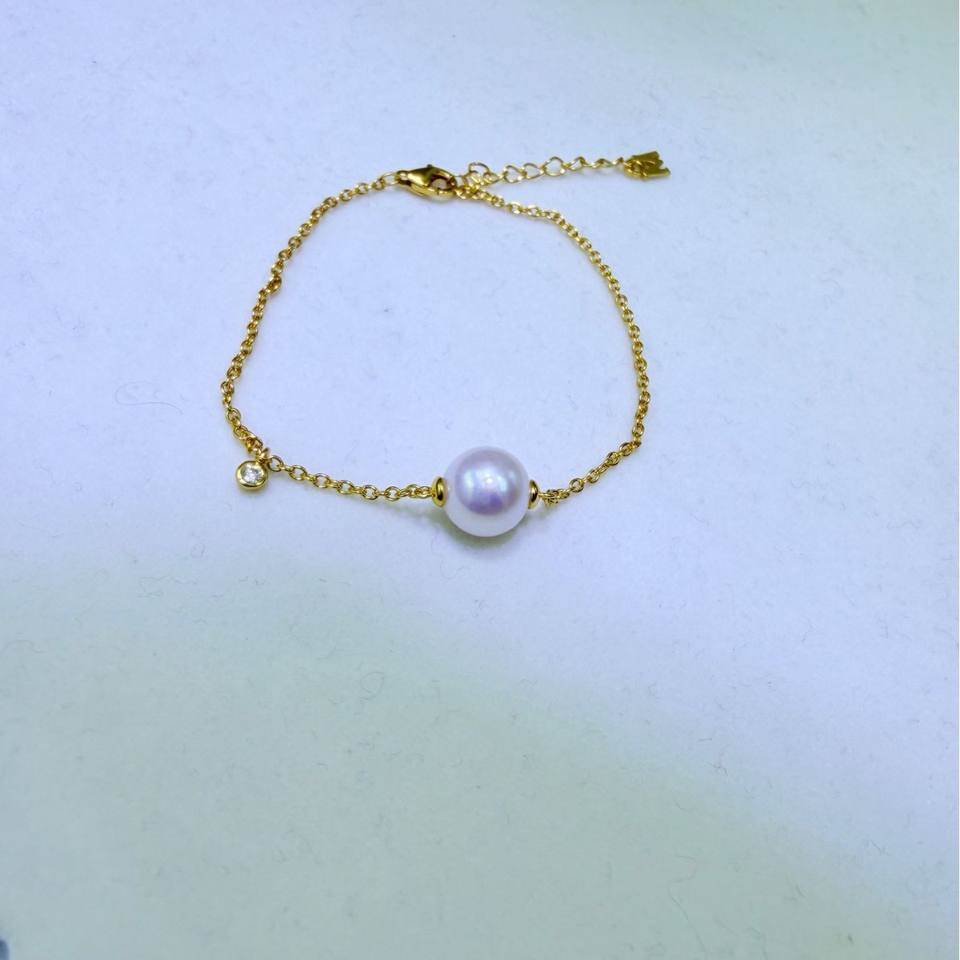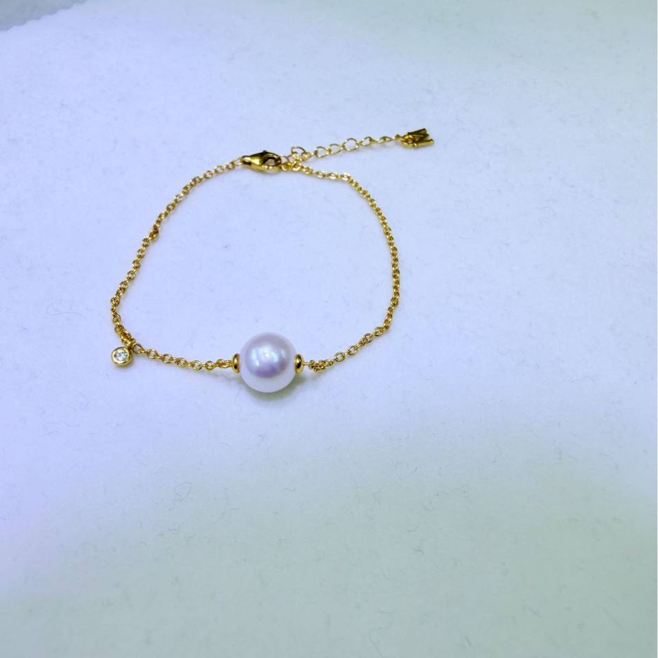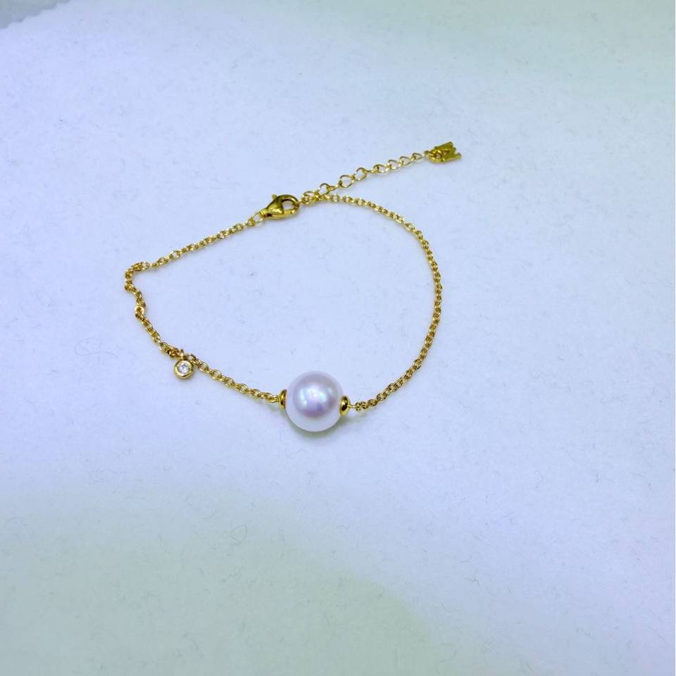 Pulsera de Perlas de Agua Dulce de 8.5-9mm de Zhuji, Plata 925, Aurora Redonda, Ajustable, Geométrica, Religiosa, Moderna