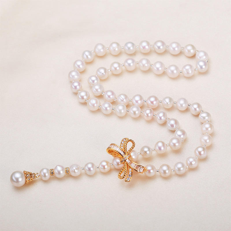 Collar de Perlas de Agua Dulce de 8mm de Zhuji para Mujer, Cierre de Mariposa, Ideal para el Día de la Madre