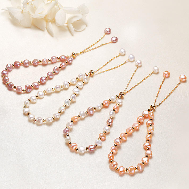 Pulsera de Perlas Barrocas de Moda Exquisita de Zhuji Danshui, Cadena Fina Extensible y Portátil para Mujer, Regalo para Novia