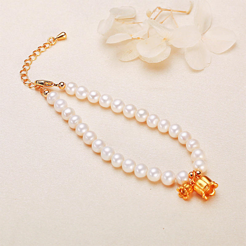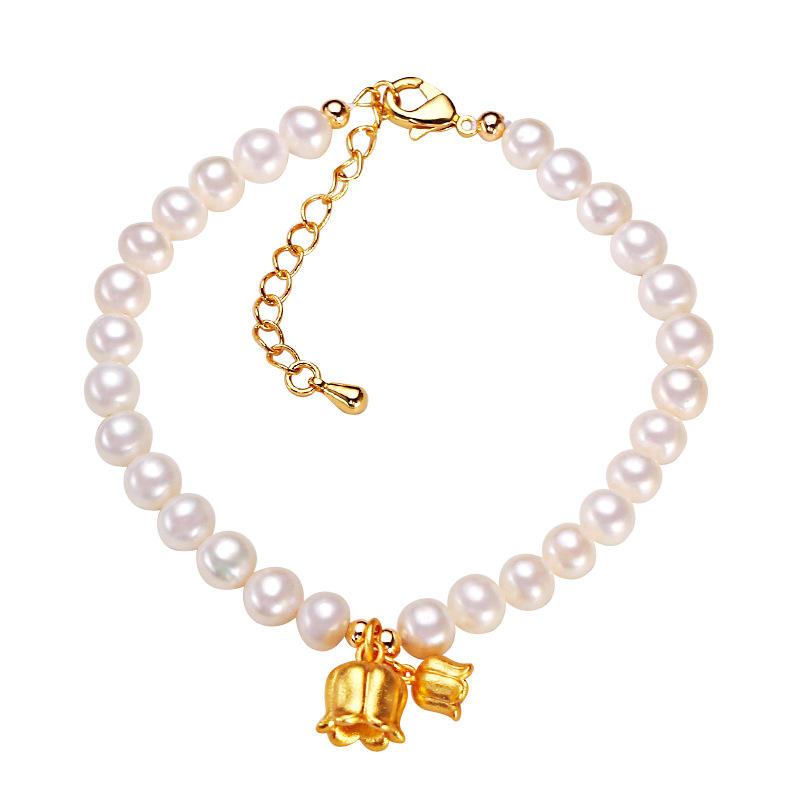Joyería de Perlas Genuinas de Zhuji, Perlas de Agua Dulce Casi Redondas con Ligeras Imperfecciones, Nuevo Estilo de Orquídea de Campana, Pulseras de Moda con Dijes, Venta al por Mayor