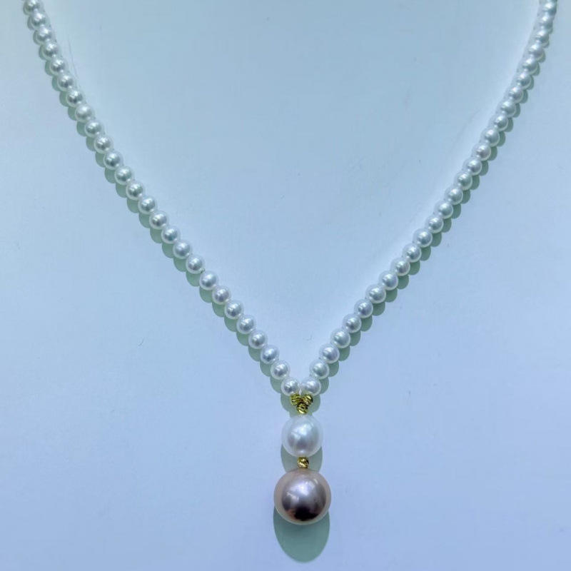 Collar de Perlas de Agua Dulce de Alta Gama de Zhuji, Perlas Bebé de 3-4 mm, Perla Morada de 8 mm + 11-12 mm, Diseño Único