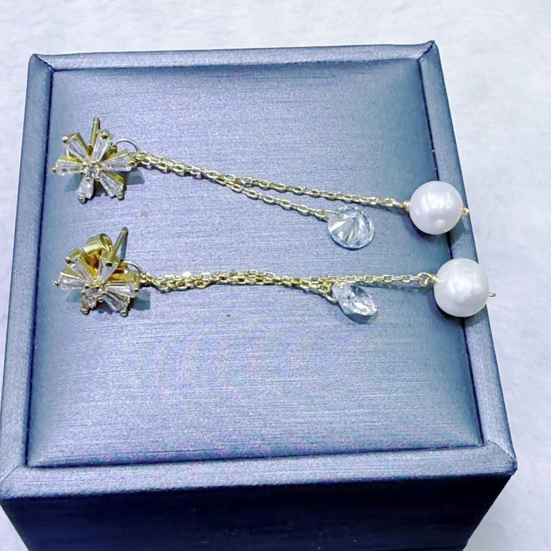 Pendientes Largos de Perlas de Agua Dulce Naturales de 6-7 mm de Lujo de Alta Gama de Zhuji, Joyería Fina Exquisita para Mujer