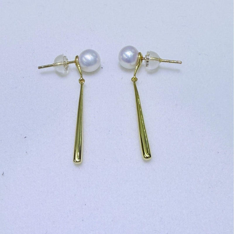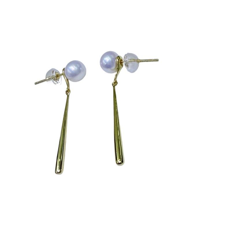 Pendientes Largos de Moda Retro de Alta Gama de Zhuji, Simples y Exquisitos, Perlas Redondas de Agua Dulce de 6-7 mm, Belleza Impecable Aurora