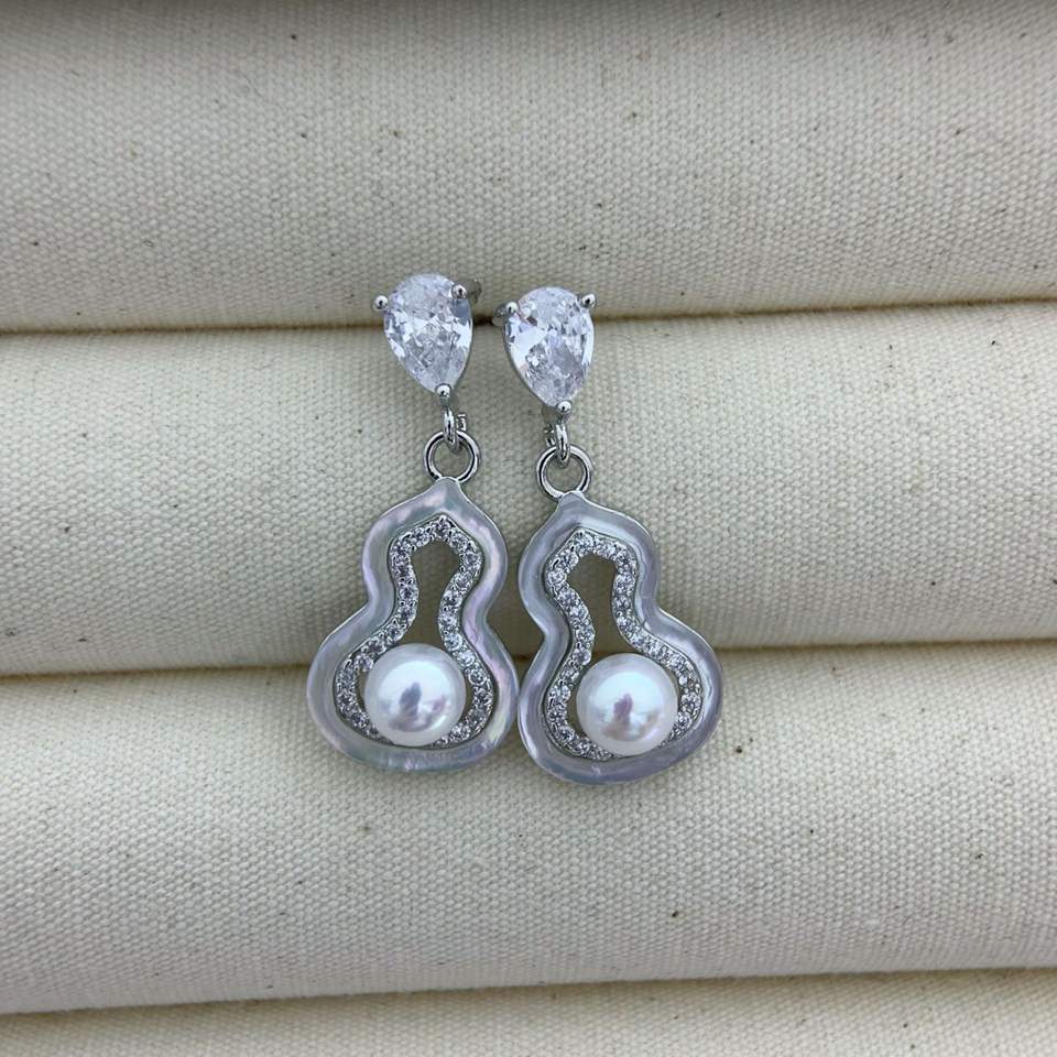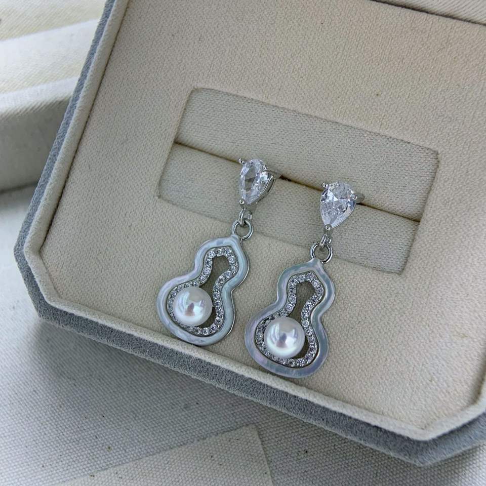 Pendientes Colgantes de Perlas de Agua Dulce de Lujo de Zhuji, 5-6 mm, Redondos, Impecables, Aurora, Calabaza Natural con Temperamento Suave y Ligero
