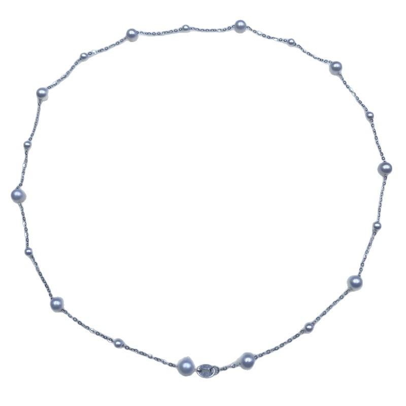 Collar de Perlas de Agua Dulce de Lujo Zhuji, Color Plateado Claro, Cielo Estrellado, Dos Cadenas Clavículares de Plata Pura S925