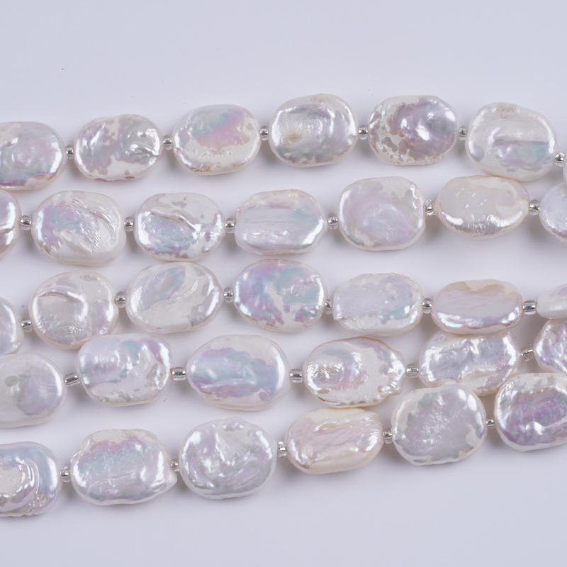 Perlas Sueltas de Agua Dulce Naturales de Zhuji, Barra Corta de 18 cm, Forma Barroca Elíptica Cuadrada, Perlas Blancas de 13-15 mm, Semi-Acabadas