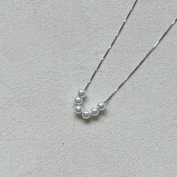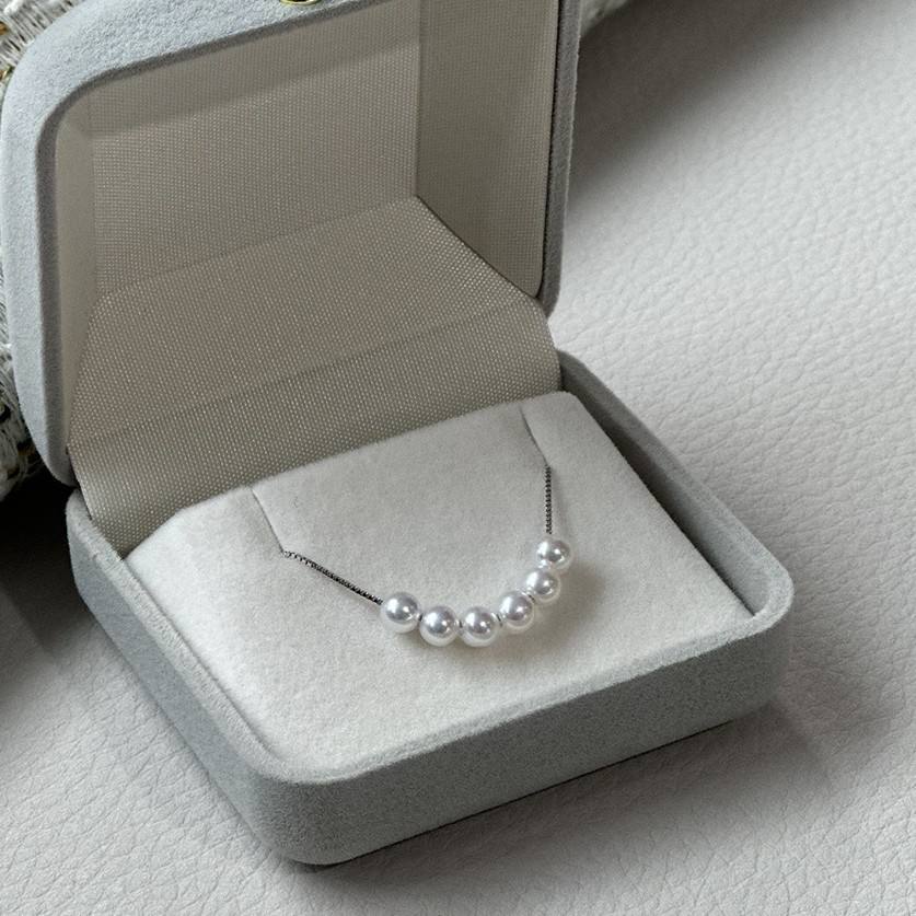 Collar de Perlas Redondas de Agua Dulce Akoya Naturales de Zhuji de 4-5 mm, Súper Brillantes, Cadena de Plata Pura 'Smile Chain'
