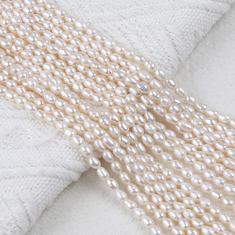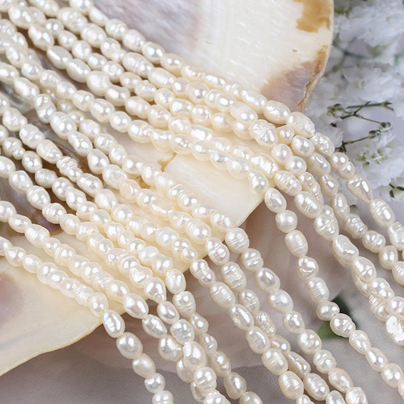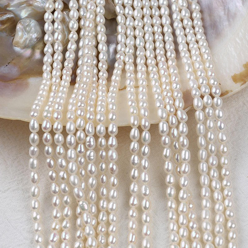 Perlas Blancas Naturales de Agua Dulce de Zhuji de 3-4 mm, Forma de Metro, Varios Grados para Joyería DIY, Cadenas de Perlas Sueltas para Usuarios de Xiaomi