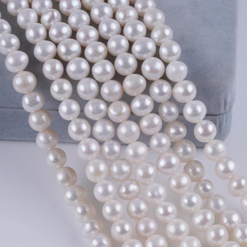 Cuentas Sueltas de Perlas Naturales de Agua Dulce de Zhuji, 7-8 mm, Blancas, Casi Redondas, para Hacer Collares y Pulseras, Venta al por Mayor